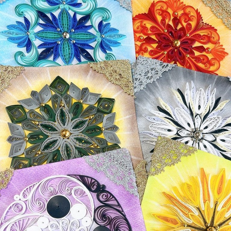 一つの講座でパーツ作り、背景作り、デコレーションと学べる事が盛りだくさんで、たくさん学べて曼荼羅で癒されて 受講して本当に良かったと思っています。